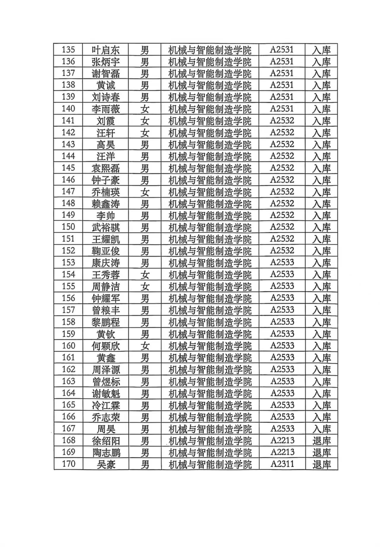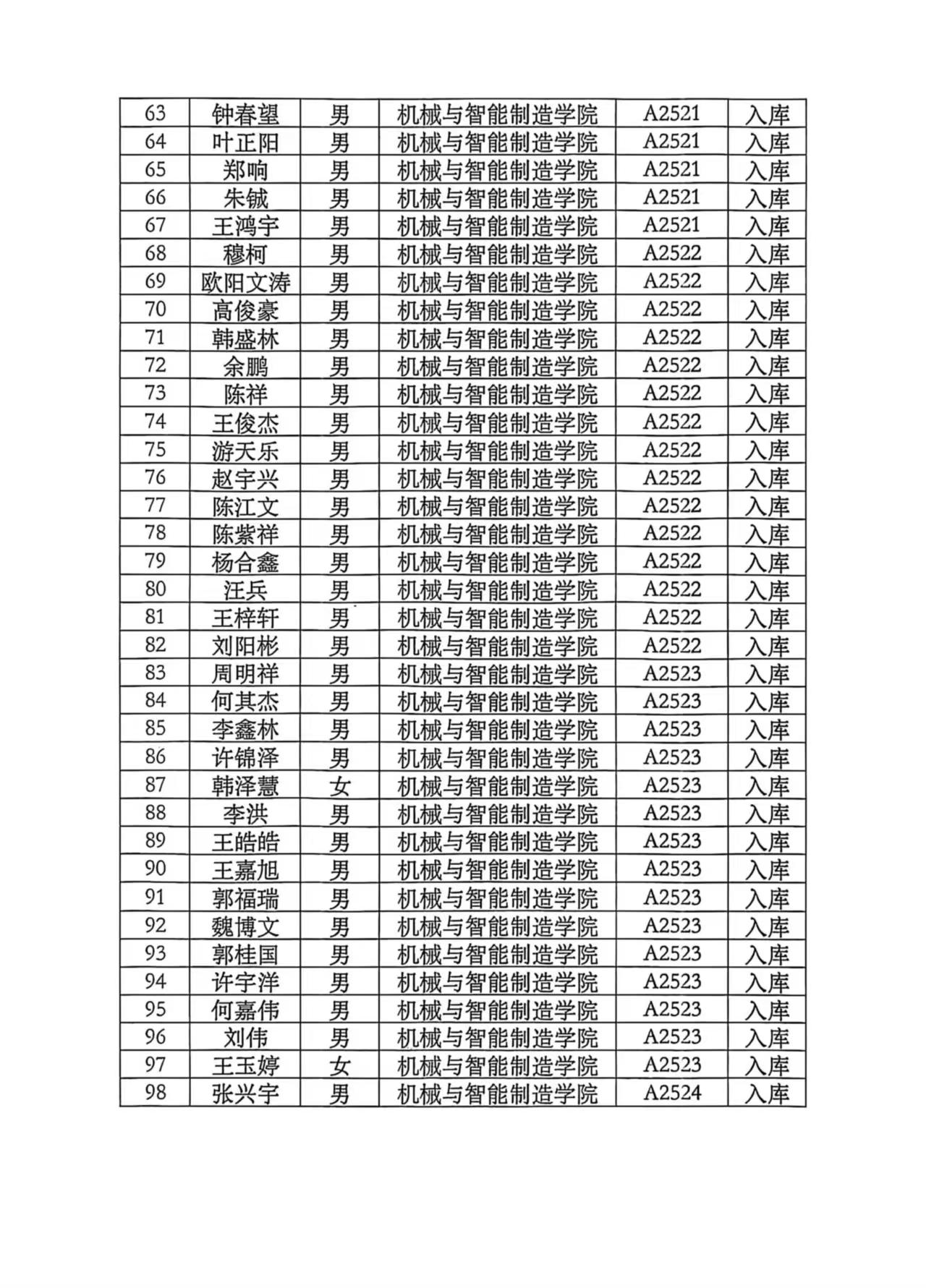 2025年机械学院转专业拟转入学生名