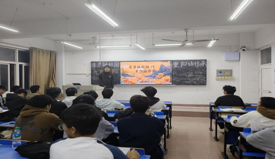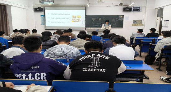 活动中,大一各班团支书和组织委员化身“文化宣讲员”,借助图文并茂的PPT,带领同学们共同追溯了重阳节的历史渊源与文化习俗。从古代登高赏秋、祭祖祈福的传统习俗,到现代社会赋予节日“尊老敬老”的核心内涵,生动展现了“孝亲”文化跨越千年的传承与发展。同学们在学习中深刻认识到,百善孝为先,孝亲敬老是中华民族延绵千年的文化根脉,是涵养社会温情的精神基石。