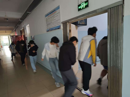 消防理论知识讲解结束后,应急疏散演练正式启动。随着尖锐的火灾警报声响起,模拟“火情”场景下的烟雾逐渐弥漫,新生们在现场工作人员的引导下,迅速保持低姿弯腰姿势,用湿毛巾捂住口鼻,按照预设疏散路线,避开火源方向,快速有序地向楼外指定安全区域撤离。